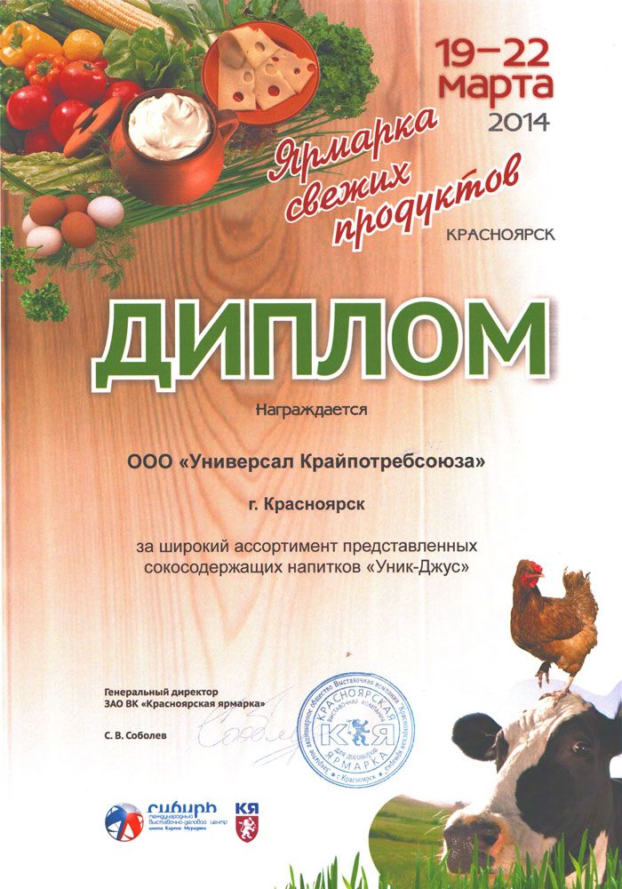 Продукция ООО «Универсал крайпотребсоюза» реализуется в Красноярске, Канске, Ачинске, Сосновоборске, Железногорске. Партнерами и клиентами компании являются торговые сети и крупные супермаркеты, такие, как: "Красный Яр", "Командор", "Аллея", "Хороший", "25 часов" и другие. Газированные напитки и очищенная вода поставляются как в торговые точки Красноярского края, так и за его пределы. ООО «Универсал крайпотребсоюза» подтверждает качество и конкурентоспособность производимой продукции, принимая участие в различных ярмарках, выставках, конкурсах.